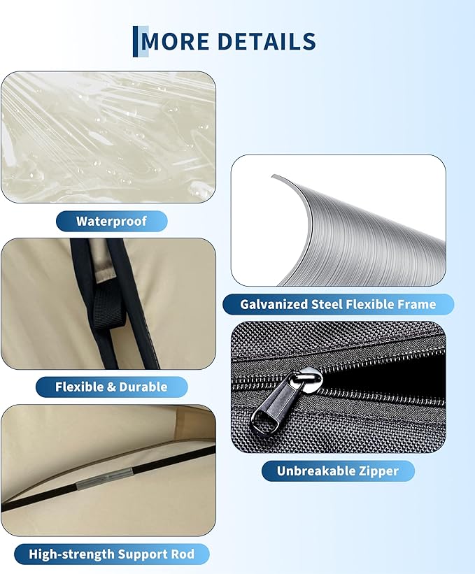 • Arched Roof Design: The arched roof structure effectively prevents water accumulation. The weather-resistant fabric provides UPF 40 UV protection throughout the day. You can open the windows for ventilation in summer and close them for warmth in winter.