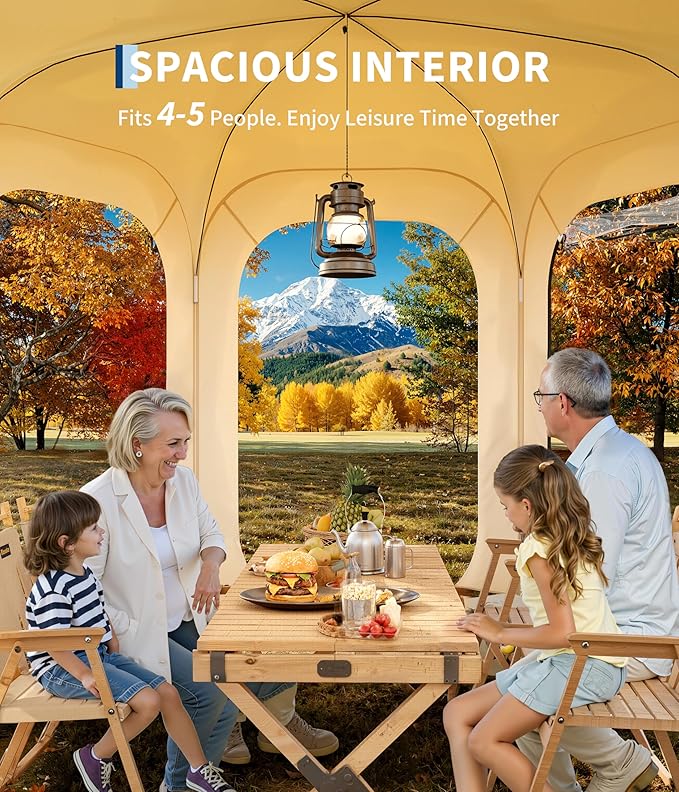 • Spacious Interior: Designed to accommodate 4-6 adults, it has a 7-foot-high ceiling that offers broader visibility and ample space for movement. Ideal for various outdoor activities such as picnics and RV trips, it makes your outdoor time more enjoyable.